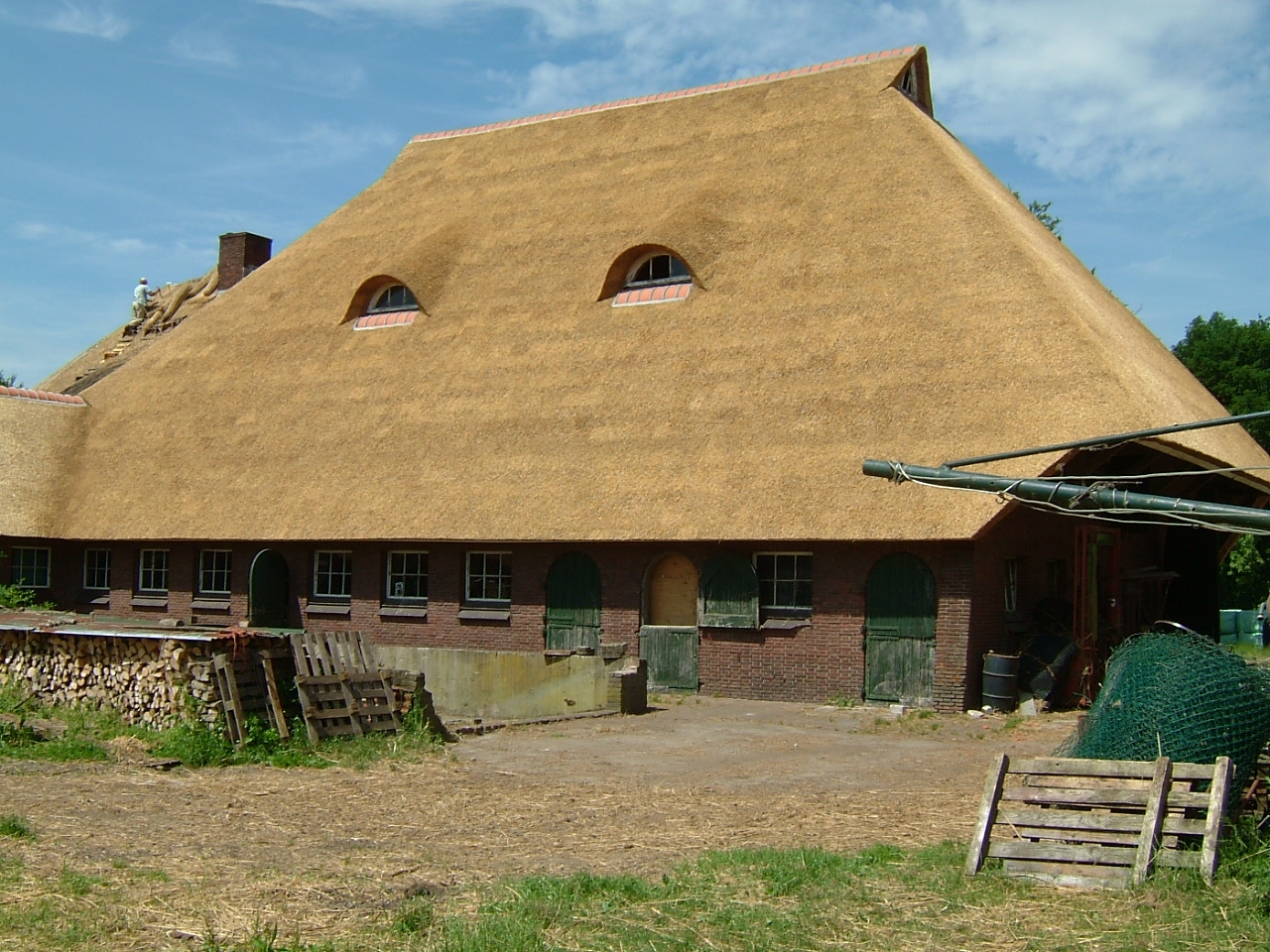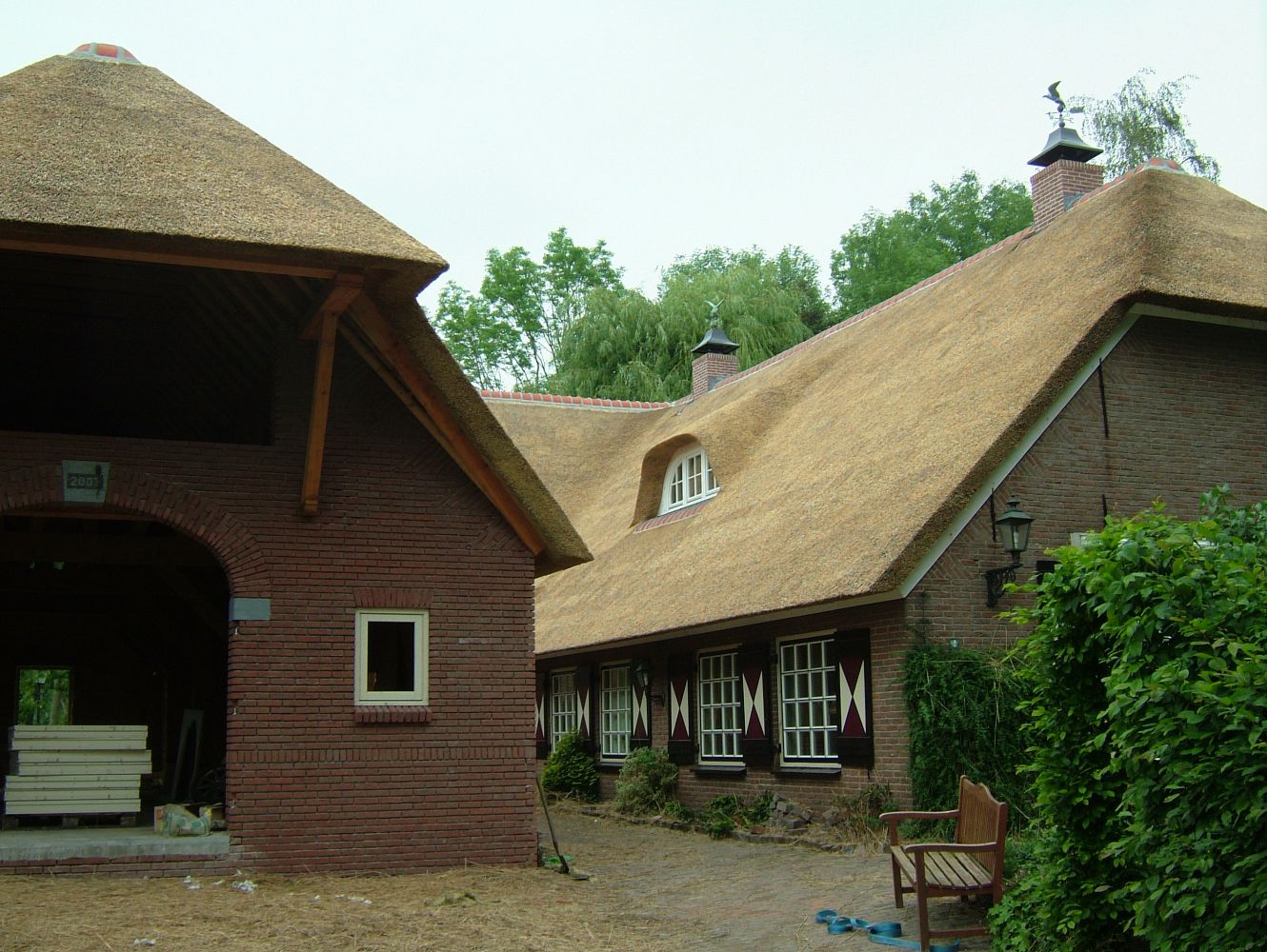 Rieten daken voor boerderijen door Van Ginkel uit Kesteren